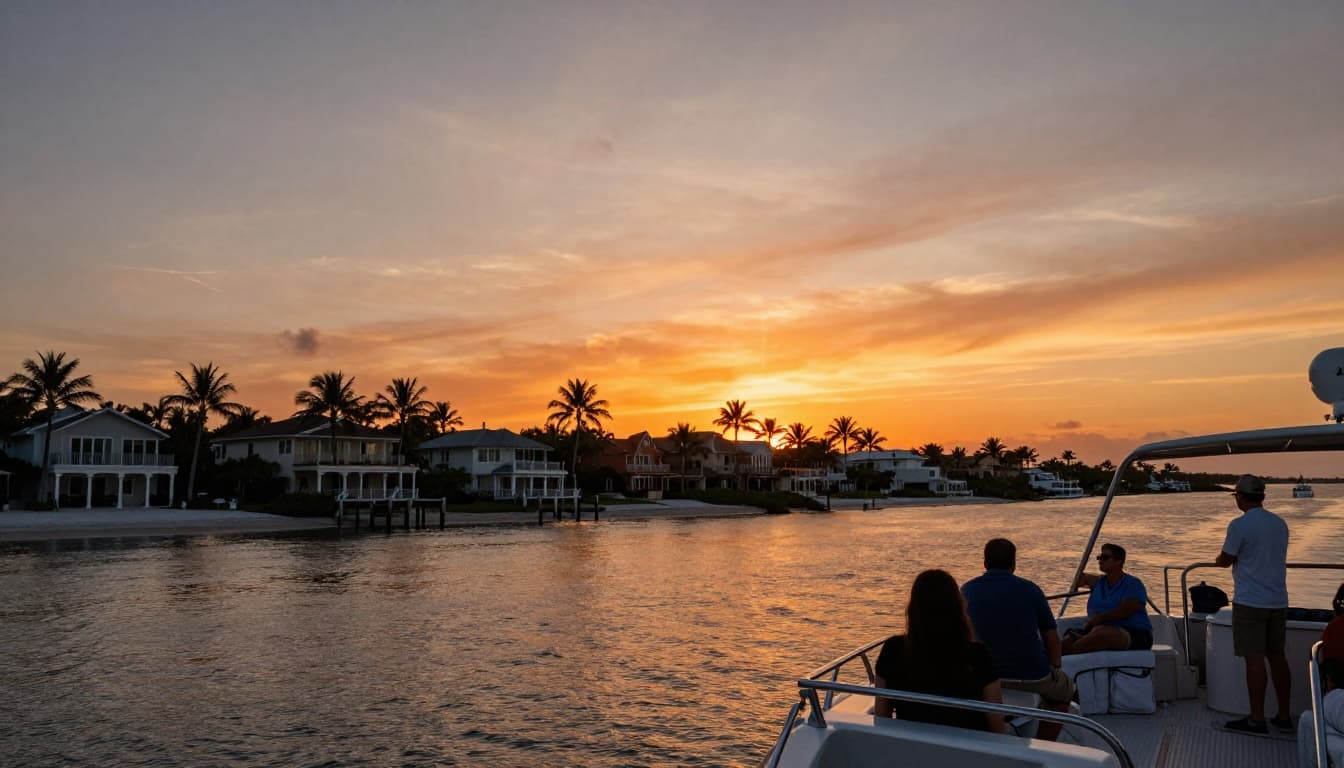 If the scenery matters as much as the wildlife, book the evening boat. Sunset cruises usually pass waterfront estates, palm-lined channels, and the Gulf horizon as the light turns orange. Dolphins still show up, but the real draw is the view.