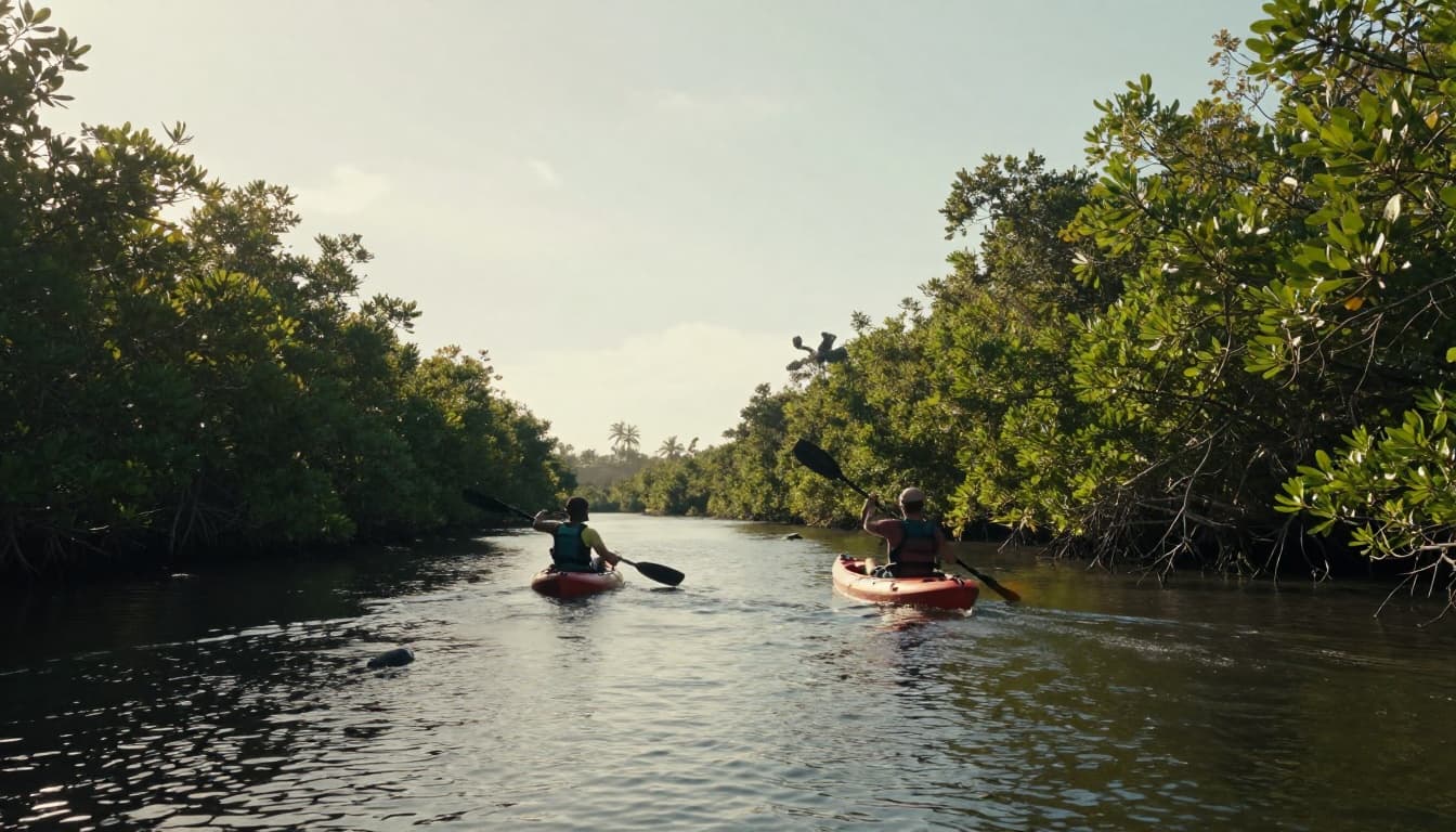 Paddle your own path through mangroves at Four Mile Cove. Rentals start cheap, and guided trips spot manatees best for beginners.