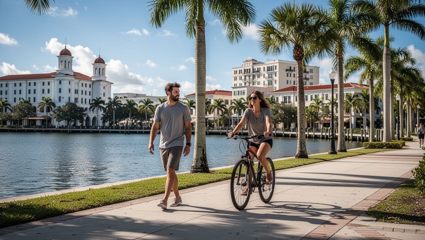 Start your day along the Fort Myers Riverwalk . This paved path hugs the Caloosahatchee River for over two miles. Palm trees sway as you spot historic homes and modern condos. Rent a bike or just stroll; families push strollers while couples chat.